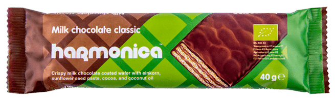 Összetevők: bevonat (bio teljes kiőrlésű alakor ősbúzaliszt, bio napraforgóolaj, térfogatnövelő szer: nátrium-hidrogén-karbonát, só), tejszín (bio nádcukor, bio kókuszvaj, bio napraforgópaszta, bio sovány tejpor, bio alacsony zsírtartalmú kakaópor, csokoládé bevonat (bio kakaómassza, bio nádcukor, bio kakaóvaj, bio sovány tejpor, bio agave inulin), antioxidáns: bio rozmaring kivonat. Kakaótartalom: 55%. Nyomokban szóját, földimogyorót és dióféléket tartalmazhat.
